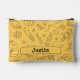 Gear up for a fantastic new school year with this cheerful and customizable Accessory Pouch! Featuring a vibrant blue backpack surrounded by playful black-and-white school doodles like books, a globe, and a school bus on a bright yellow background. This fun design is perfect for organizing all your notes and assignments. Easily add your name, grade, or a special message to make this Accessory Pouch uniquely yours. An exciting and personalized accessory for the 'Back To School' season!