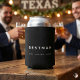 Give your best man a gift he'll actually use with this custom black can cooler. Perfect for bachelor parties and wedding day toasts, it features personalized white text for "BESTMAN," his name (e.g., HENRY), and the wedding date and location (e.g., 12.07.2026 • TEXAS). Keep his drink cold and commemorate the special day. This durable neoprene koozie is an ideal personalized wedding favor or groomsman gift. Customization is easy!