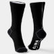 Minimal style personalized black socks. A custom name is printed in white on the sole part of each sock. Elegant classic black sock with your name on them are practical and stylish.