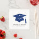 This simple and modern graduation party paper napkin features a large blue graduation cap with tassel centered on the design for a clean, classic look. The shade of blue can be adjusted to match school colors, from light blue to navy. Beneath the cap, the graduate’s name is displayed, followed by the class year and school name in crisp, easy-to-read fonts that keep everything looking polished and balanced.