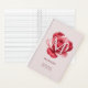 This personalized notebook features a romantic rose design set against a soft pink background, customized with the bridesmaid's name and wedding date for a timeless, elegant look.