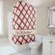 Transform your bathroom into an elegant retreat with this customizable burgundy and cream diagonal lattice shower curtain featuring your personalized family name. The sophisticated diamond trellis pattern in rich burgundy on warm cream background creates a timeless, luxurious focal point. Your family name is prominently displayed in burgundy serif typography on a cream ribbon banner with decorative pink accents and ornamental corner flourishes. Personalize with your surname to create a truly custom bathroom. The classic color palette adds elegance and personality while coordinating beautifully with burgundy, cream, gold, pink, or white towels and accessories. Made from durable, water-resistant polyester fabric with reinforced buttonhole grommets for easy hanging. Fade-resistant printing ensures long-lasting beauty. Standard size (approximately 71x74") fits most tubs and showers. Machine washable for easy maintenance. Perfect for updating master bathrooms, guest baths, or as a personalized wedding, housewarming, or anniversary gift. Elegant sophistication meets everyday functionality.