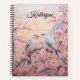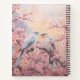 This design features two birds sitting among cherry blossoms with soft pastel mountains in the background. A calm, nature-inspired scene on a notebook, customizable with a name or message—perfect for writing thoughts, inspirations, or quiet reflections