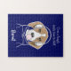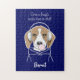 The design features an illustration of a relaxing beagle wearing headphones and blowing pink bubblegum. With your personalized text and favorite background color, it makes a cute, funny, and unique puzzle for dog lovers!