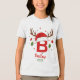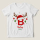 Create a one of a kind holiday keepsake with this festive personalized monogram. This design features the letter 'B' topped with a cute Santa hat and reindeer antlers, ready for your custom text. Click 'Personalize' to easily add a name and the year. Perfect for matching family shirts, custom stocking tags, or a special Christmas gift.