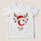 Create a one of a kind holiday keepsake with this festive personalized monogram. This design features the letter 'C' topped with a cute Santa hat and reindeer antlers, ready for your custom text. Click 'Personalize' to easily add a name and the year. Perfect for matching family shirts, custom stocking tags, or a special Christmas gift.