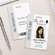 Choose a clean and efficient design for your company's identification needs. This badge features a minimalist color palette of light gray and white, with a vertical color bar for department or team designation. The balanced layout ensures the professional photo, name, and title are instantly recognizable, projecting a polished and trustworthy corporate image.