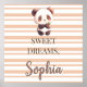 Below the illustration, the classic "Sweet Dreams," message is followed by your child's name in a beautiful, flowing script. The warm espresso tones of the text coordinate perfectly with the panda's features, while a crisp white outline ensures the name is easy to read against the patterned background.