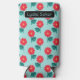 Keep your drink chilled in style with this adorable custom can cooler featuring a bright red daisy pattern on a soft aqua background. Personalize it with your name, initials, or a short message for a fun and practical accessory at picnics, parties, barbecues, beach days, or pickleball games.