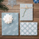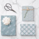 Wrap your gifts in a serene winter palette with this set of three coordinating wrapping papers. The collection utilizes a beautiful dusty blue and white color scheme for a clean, elegant, and modern Christmas look.