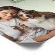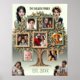 Motif: The design is centered around a stylized brown tree trunk and branches. The branches are covered with soft green, layered leaves. Multiple photo frames (some square, some rectangular, some wooden-looking, some green-framed) are placed among the leaves, simulating fruit or hanging ornaments. Each frame holds a portrait or family photo.