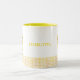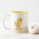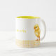 This customizable mug features a playful yellow chick standing on an yellow checkered base. Add any name to create a unique gift or personal keepsake. Perfect for animal lovers, rustic kitchens, or anyone who enjoys cheerful, farm-inspired designs. Ideal for birthdays, everyday use, or cottagecore collections. The clean layout and warm colors make it a charming addition to any drinkware set. Personalize it now and bring a touch of countryside joy to your daily routine.