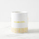 This customizable mug features a playful yellow chick standing on an yellow checkered base. Add any name to create a unique gift or personal keepsake. Perfect for animal lovers, rustic kitchens, or anyone who enjoys cheerful, farm-inspired designs. Ideal for birthdays, everyday use, or cottagecore collections. The clean layout and warm colors make it a charming addition to any drinkware set. Personalize it now and bring a touch of countryside joy to your daily routine.