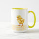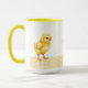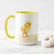 This customizable mug features a playful yellow chick standing on an yellow checkered base. Add any name to create a unique gift or personal keepsake. Perfect for animal lovers, rustic kitchens, or anyone who enjoys cheerful, farm-inspired designs. Ideal for birthdays, everyday use, or cottagecore collections. The clean layout and warm colors make it a charming addition to any drinkware set. Personalize it now and bring a touch of countryside joy to your daily routine.