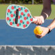 Play in style with this cheerful custom pickleball paddle featuring a bright red daisy pattern on a soft aqua background. Add your name or initials to the front panel for a paddle that’s uniquely yours — perfect for leagues, clubs, or casual games with friends.