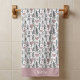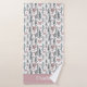 This bath towel design is complete with a seamless pattern of green trees and pink hearts set against a white background. There is a place to add your name at the bottom of the towel.