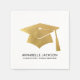 This simple and modern graduation party paper napkin features a large faux metallic gold foil graduation cap with tassel centered on the design for a clean, elevated look. The gold foil effect adds a touch of shine and sophistication without overpowering the design. Beneath the cap, the graduate’s name is displayed, followed by the class year and school name in crisp, easy-to-read fonts that keep everything polished and balanced.