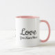 Personalized with "Love, YourName" on the back for a custom touch. Charming pink interior and handle add festive Valentine's flair. High-quality ceramic, dishwasher and microwave safe.