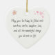 Celebrate a loved one's special day with this charming heart-shaped ceramic ornament. One side features a heartfelt birthday message with sweet floral and heart illustrations, while the other side showcases your custom photo—perfect for capturing a memory or portrait. Makes a meaningful keepsake for birthdays, especially when paired with your own words and a cherished image. A thoughtful gift they'll treasure for years to come.