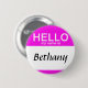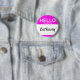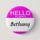 Sometimes that Hello My Name Is sticker is just not going to cut it, and you need a more permanent option. Well here is your very own Hello My Name is round button pin in pink. One of the most recognizable name tags you have seen, customizable to your name. The eco-friendly option for social gatherings and meeting new people, beursache who can resist this classic tag.