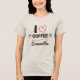 Show your love for coffee with this personalized “I ❤️ Coffee” T-shirt featuring a custom name and charming coffee cup icons. Perfect for baristas, coffee lovers, and gift giving! The bold “COFFEE” text with coffee bean patterns and side icons makes this shirt unique and stylish.