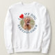 Personalized I LOVE MY DOG Sweatshirt. Simple, stylish Dog Parent Sweatshirts, which says I LOVE MY DOG and includes a red heart with paw print outlines and CUSTOMIZABLE PHOTO, where you can upload a favorite photo of your dog and add their name at the bottom. An ideal Dog Mom or Dog Dad gift for Mother's Day or Father's Day, where you can wear matching Dog Parent Sweatshirts as you are out walking the dogs. Hoodie version available. Matching gifts available too, so you can create awesome gift sets.