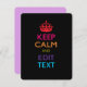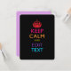 Ein personalisiertes, mehrfarbiges Sprichwort im Stil von "Keep Calm" und "Carry On". Humorvoll oder skurril versuchen Sie Ihre kreativen Worte auf den zwei bearbeitbaren Textzeilen. Vergessen Sie nicht, HAUPTSTÄDTE für beste Ergebnisse zu verwenden. Verwenden Sie den Link "Diesen Designer Gefragt", um uns mit Ihren speziellen Designanfragen oder für Hilfe bei Ihren Anpassungsbedürfnissen zu kontaktieren.