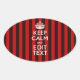 Personalized Keep Calm Your Text on Red Stripes Ovaler Aufkleber
