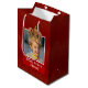 Wrap your gifts in a royal custom red gift bag that features an elegant background of gold shimmery lines. Personalize this bright design with a photo of your young birthday boy, complete with a beautiful gold king crown.