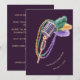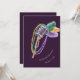 Get ready for the 2026 Mardi Gras season with this elegant and soulful jazz-themed invitation! This design features a stunning watercolor vintage microphone adorned with traditional purple, green, and gold beads and festive feathers. Set against a deep royal purple background, it perfectly captures the spirit of a New Orleans French Quarter night.