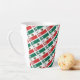 Small latte mug with a tiled Mexican flag pattern covering the full printable area. One side features a white fractal squiggly‑square patch with your custom name in green text. Perfect for Mexico family reunions, Cinco de Mayo, Mexican Independence Day Sept 16, cultural pride, and everyday use.
