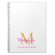 This modern notebook features a pink and orange monogram and name in stylish script typography. It is easily customizable.