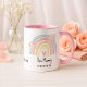 Show a special Mum how much she is loved with this charming personalized mug. It features a sweet design with a soft pastel rainbow arch, delicate floral clusters, and space for a custom message or children's names. This thoughtful gift is perfect for Mother's Day, birthdays, or just to bring a smile to Mum's face.