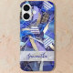 Personalized Name Blue White Lilac Abstract Stripe iPhone 16 Hülle
