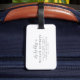 The back includes space for contact details along with “This bag belongs to:” for easy identification while traveling.