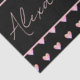 This Personalized design features space to add your name in a stylish script, with a pattern of soft pink Heart accents on a black background. Ideal for Christmas gift wrap, birthdays, Valentine's Day, or any special occasion.
