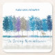 A beautiful and comforting inage of teal, blue and green trees with a modern font In Loving Remembrance across the bottom. Personalize it with the name of the person across the top of the trees. Serene and peaceful gift for someone as you offer condolences on their loss to remember their loved one after they have passed away.