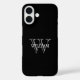 Personalized name monogram black and gray iPhone 16 case, elegant black and gray script custom iPhone 16 case .