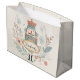This charming nutcracker gift bag brings a soft vintage look to your holiday gifting. The pastel shades of pink, blue, and gold pair beautifully with delicate floral accents for a cozy Christmas feel. Personalize the name with just a few clicks.