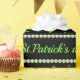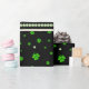 Personalized Pattern of green shamrocks with light green pearls on Black background symbolizing luck, harmony, and Irish spirit.