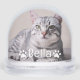 Custom pet photo snow globe features a favorite picture of your furry family member along with their name and paw print accents that can personalized. Two sided design allows you to use the same photo and pet name on both sides, or you can choose to customize it with a different photo or pet dog or cat on each side.