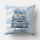 Set against a soft, watercolor-style blue and white striped background, this pillow is the perfect gift for a nursery, a travel lover, or anyone who appreciates a shabby chic aesthetic. Easily customize it with your name and initial to create a unique decorative piece.