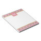 The pink and green color scheme, combined with a delicate gold border, creates a warm and inviting vibe that's perfect for the winter holidays. Whether you use it for holiday card writing, gift lists, or simply as a thoughtful gift for friends and family, this personalized notepad will add a bit of holiday magic to your season.
