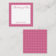 Personalized stationery enclosure notecard with a pink gingham pattern in notes of dark deep and vibrant rose pink with the sentimental words "Thinking of You". Tuck it into a flower bouquet or meaningful gift. These minimal flower shop inspired enclosure cards bring a retro kitchen vibe to your most thoughtful moments.