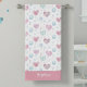 This adorable pink heart towel design is complete with a cute pink, purple, and blue heart pattern as well as a place to add your name.