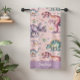 This adorable dinosaur towel design is complete with a cute pink and purple dinosaur pattern as well as a place to add your girl's name.