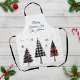 Bring festive farmhouse charm into your kitchen with this personalized Christmas baking apron featuring three buffalo plaid Christmas trees, winter snowflakes, and elegant holiday script. Customize the text with your family name or holiday message — perfect for cookie decorating, Christmas brunch, or holiday cooking fun.
