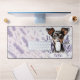 A charming custom phone holder featuring a hand-drawn Miniature Pinscher named BoBo, surrounded by soft lavender blooms for a unique and elegant look.