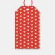 A cute red and white Valentines Day gift tag with the words, hugs kisses & valentine wishes, with a pattern of white hearts on a red background on the back of the gift tag. Personalized it with your name for your Valentine's Day gifts and Treats. Designed for you by Blackberry Boulevard.