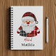Personalized Santa notebook features an illustration of Santa Claus in patchwork design